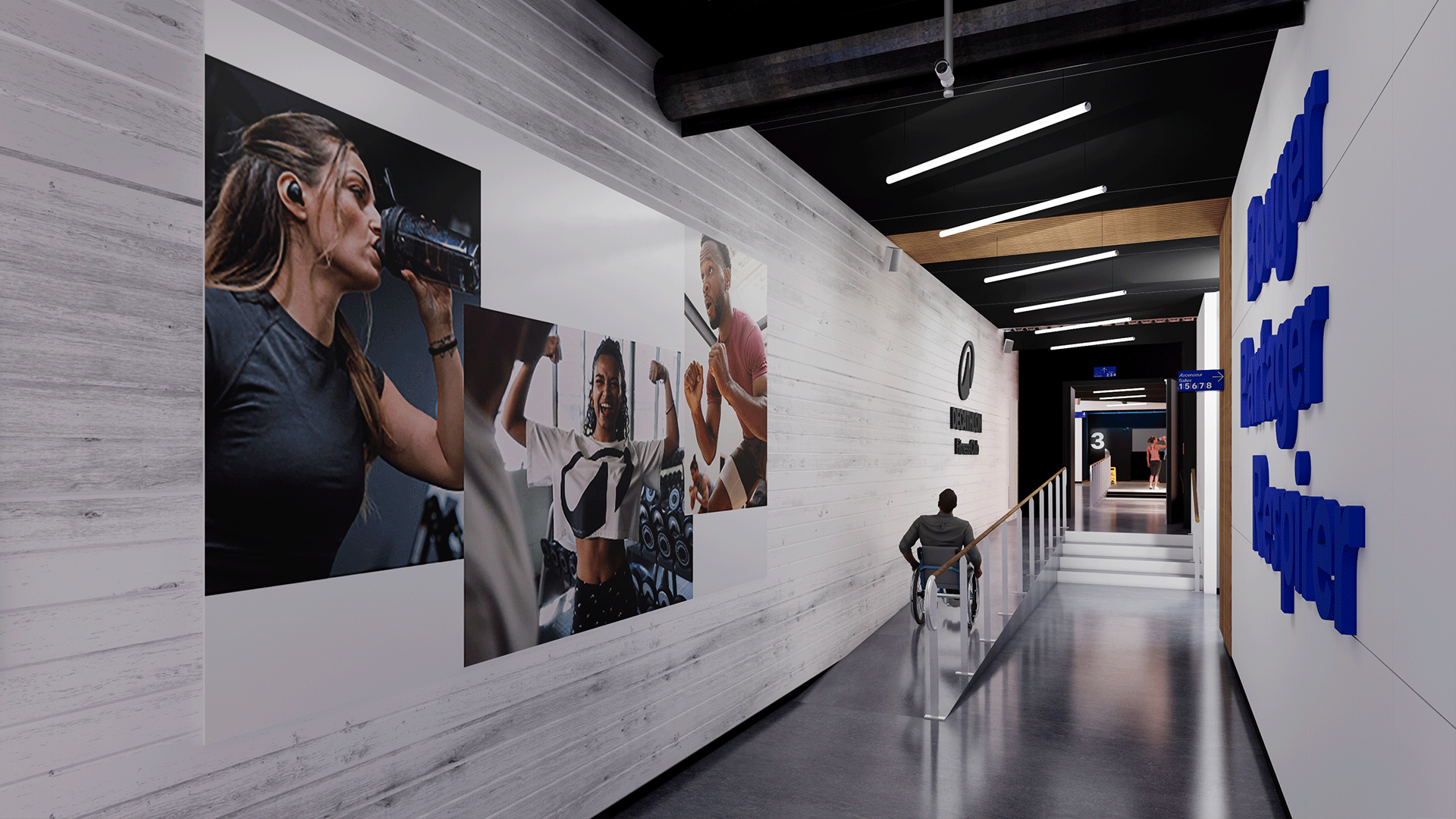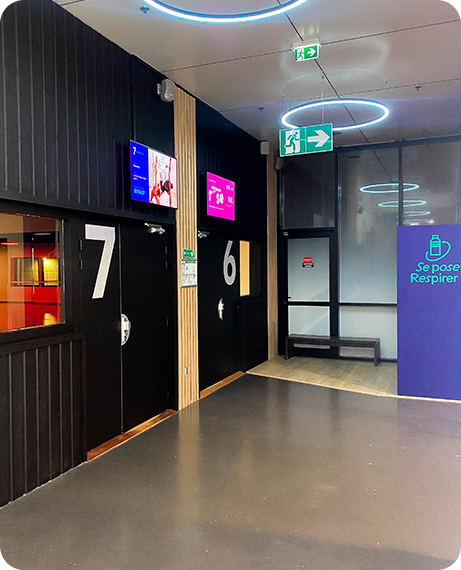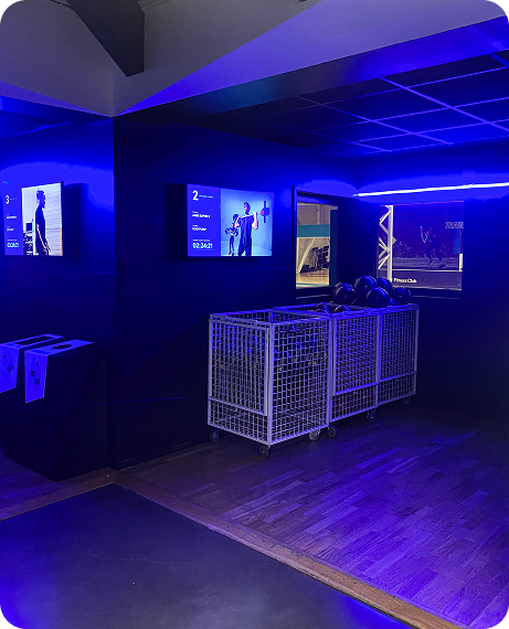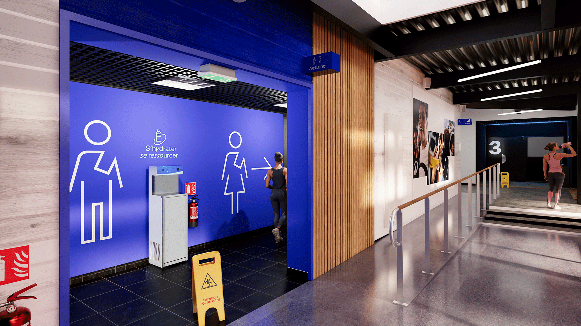 Des peintures murales jusqu’à l’expérience utilisateur, chaque détail y compris l’intégration de solutions digitales a été soigneusement pensé pour offrir un environnement cohérent et innovant pour les clients du wellness et du fitness.