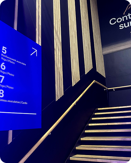 Le projet a couvert la conception de l’identité visuelle, la communication globale sur l’ensemble des touchpoints et l’aménagement des espaces, en étroite collaboration avec l’équipe du Domyos Club et nos partenaires spécialisés dans la fabrication du mobilier.