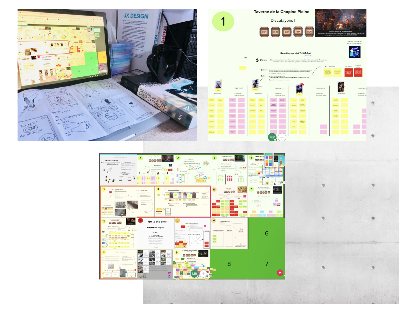 D’abord par l’association judicieuse de différents outils : trello pour l’aspect organisationnel, Discord pour communiquer à distance par la visio et l’audio, Mural pour l’idéation collaborative, très efficace pour digitaliser la war room (la salle de réunion dans le jargon ux) et modéliser le workflow.