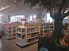 Pas de promotions apparentes mais de l’information discrète et élégante, distillée dans le store pour orienter le parcours client et informer sur les spécificités produits. Même si parfois un peu cliché (les citronniers artificiels par exemple). Le décor est fait pour se poser, consommer et s’évader, seul ou accompagné.
