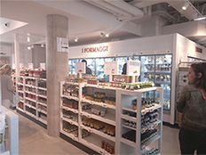 Tout l’espace est parfaitement scénarisé autour du thème de l’Italie. La petite ruelle avec la voiturette de livraison, les étals de marché reconstitués, la disposition et la starification des produits, les kiosques produits frais, … Tout joue parfaitement son rôle.